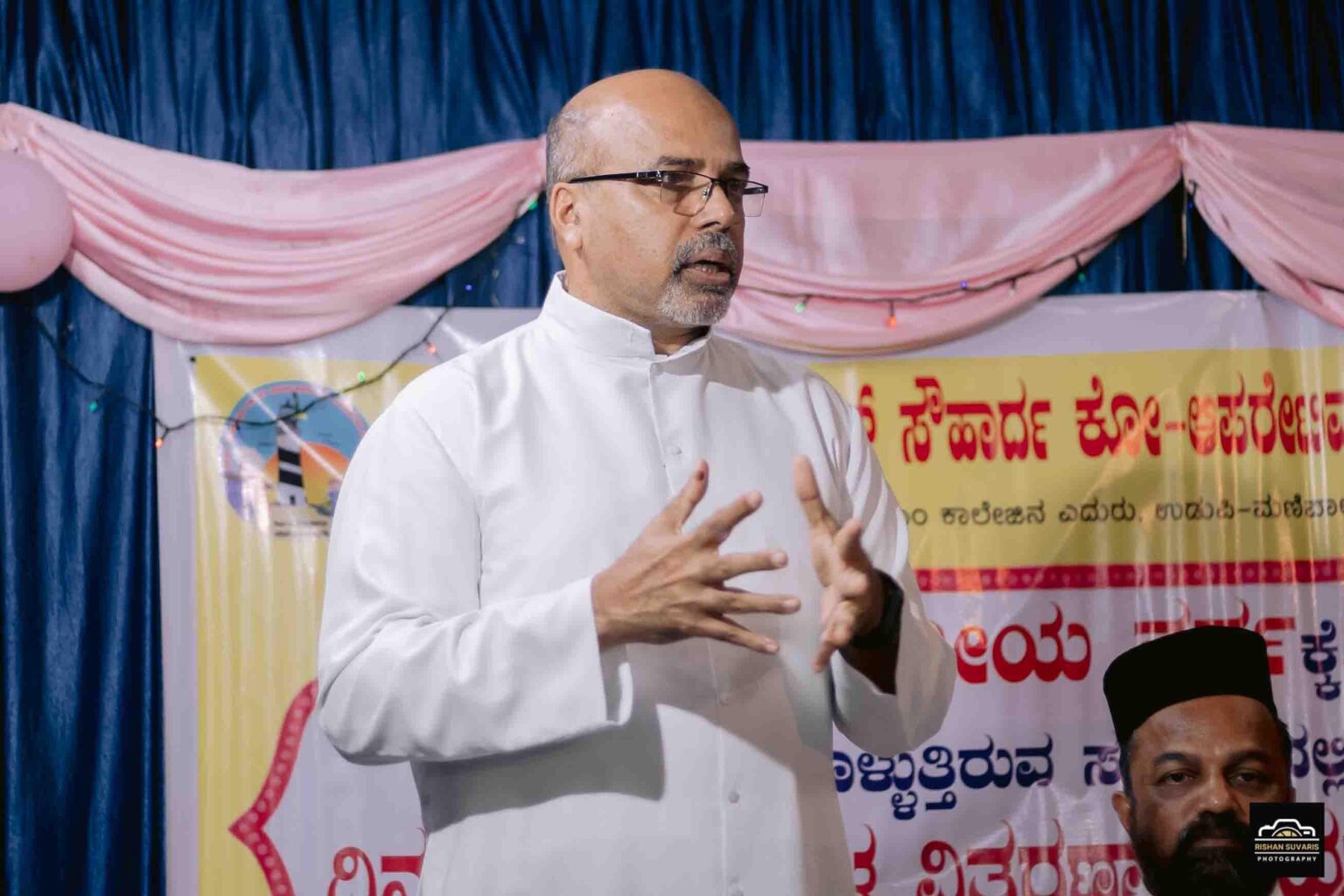 Jeevan D'Souza, the founder and managing director of Udupi Syndicate Credit Souharda Co-operative Society, spoke at the event marking the society's second year. He shared that the original inspiration for organizing such social programs came from Fr. Valerian Mendonsa, whose social thinking and vision had been a guiding force for the organization since its inception. D'Souza expressed that Fr. Mendonsa’s passing is an irreplaceable loss, and dedicated the success of the current program to his memory. He also mentioned that prior celebrations included an event with the special children at the Mental Rehabilitation Center in Pambur, and today's event with the children at St. Vincent Pallotti Convent in Udyavara.