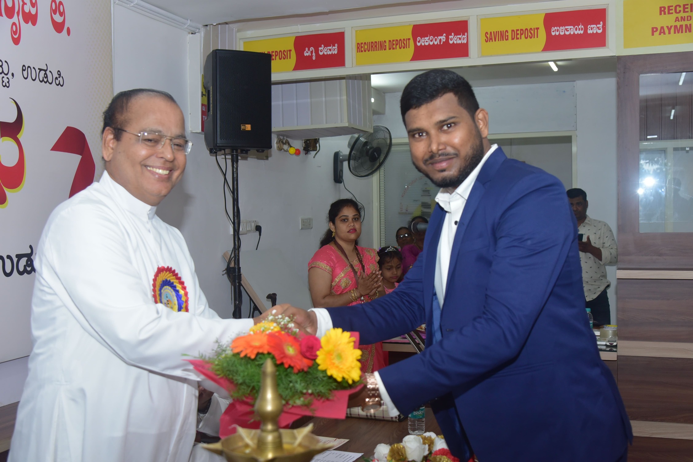 The Branch premises was blessed by Rev.Fr. Valerian Mendonsa, Parish priest of Milagres Cathedreal, Kallianpur. The presence of a vibrant personality of our charming honourable Speaker, Shri.U.T.Khader, as the inaugurator, added the required glitz and glamour to the occasion.The event also witnessed the presence of esteemed guests, who expressed their admiration for the initiative and extended their support towards its endeavours. Furthermore, the inaugural function provided an opportunity for community members to voice their thoughts and suggestions. Attendees praised the society's dedication towards social welfare and expressed their eagerness to actively participate and contribute towards its success.