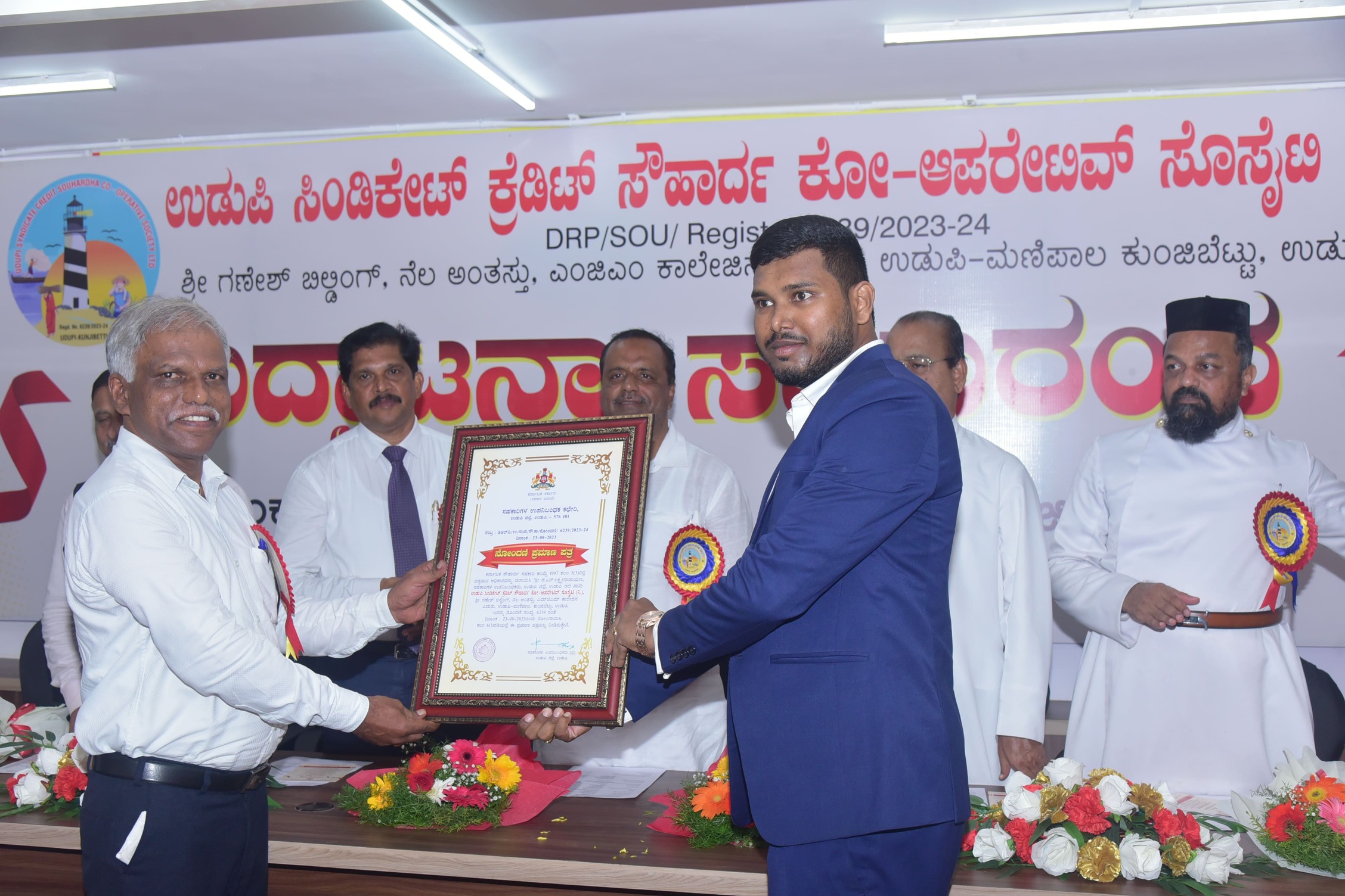 The Udupi city witnessed a memorable and successful inaugural function of the newly formed Cooperative Society Namely, Udupi Syndicate Credit Souhardha Co-operative Society Ltd., on 8th September 2023. The event was attended by prominent personalities and community leaders such as Fr. Lawrance David Crasta, Shri Manjunath S.K, Shri B. Jayakar Shetty, Shri Dr.Nery Cornelio and local residents, who gathered to support and celebrate the beginning of this promising cooperative society.