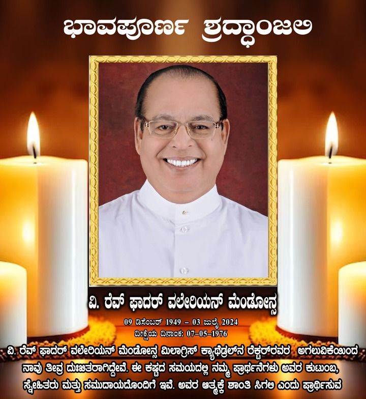 Condolence on the Untimely Passing of Father Valerian Mendonsa